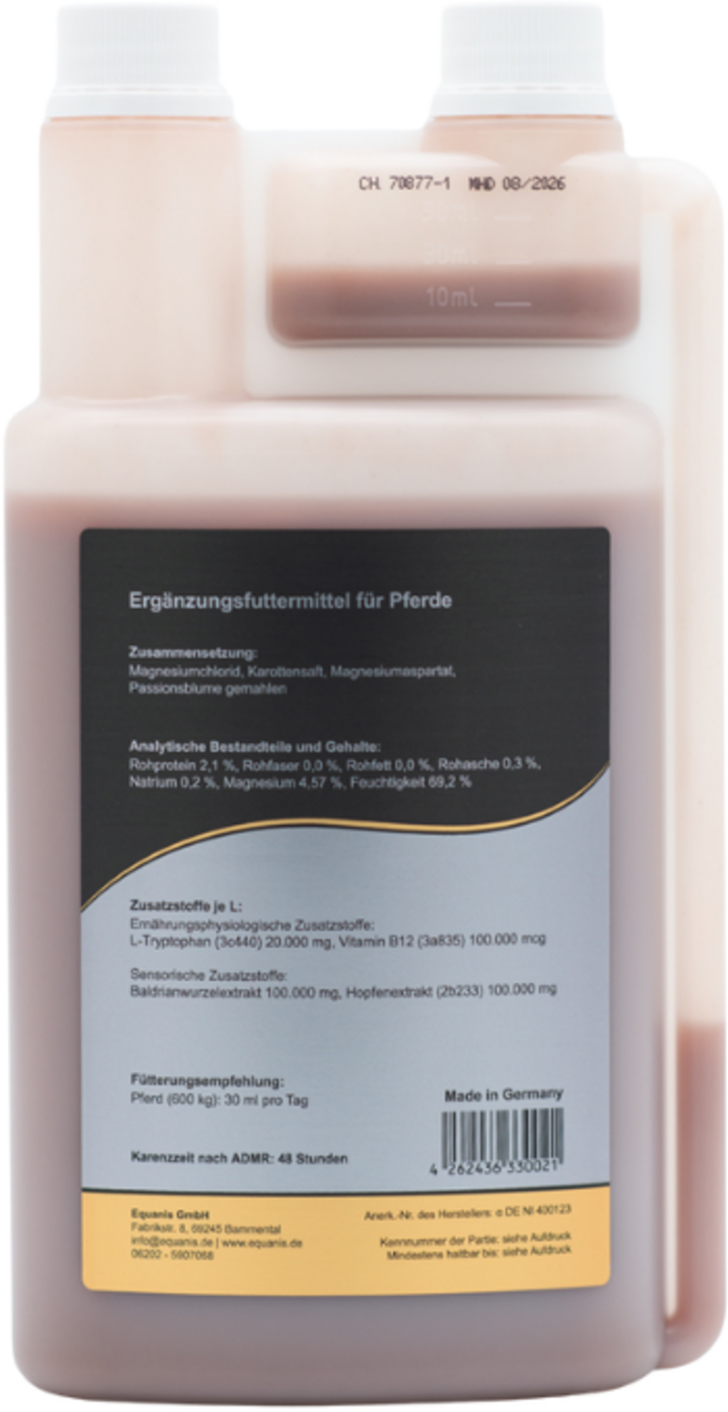 Dosage recommandé (pour un cheval pesant 600 kg) : 30 ml par jour.