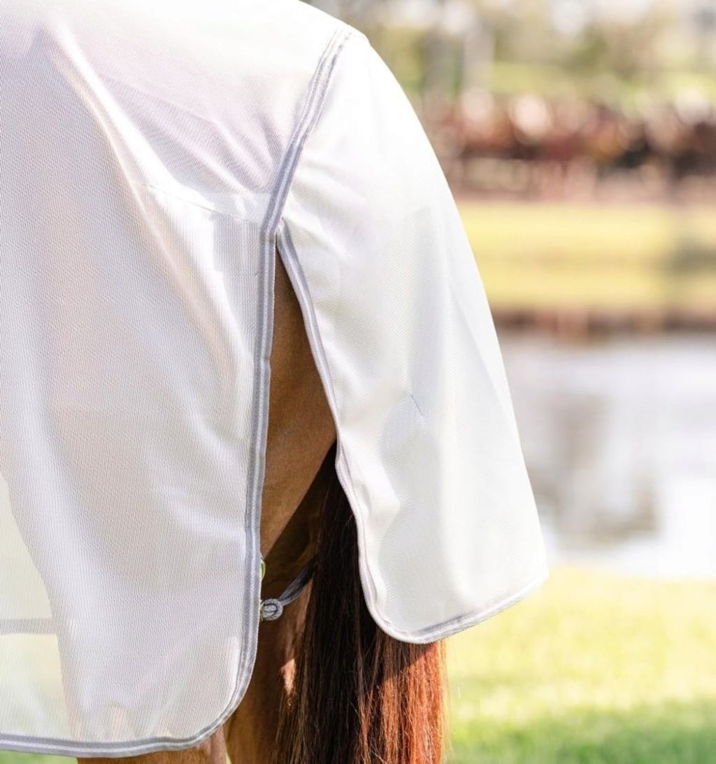 Cette couverture anti-mouches robuste et respirante de Horseware Ireland protège efficacement votre poney contre les insectes et les rayons UV. Le tissu à mailles fines, doté d’un matériau réfléchissant le soleil, offre une protection UV de 65 %.
