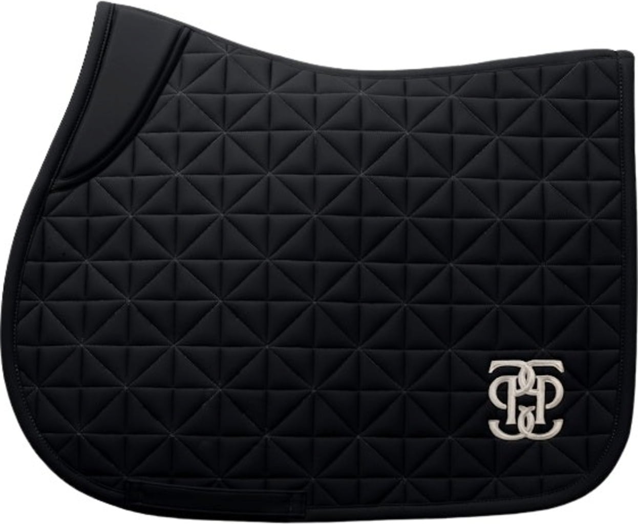 Grâce aux coussinets de maintien, le tapis reste parfaitement en place sous la selle. Son matelassage symétrique en losanges et la broderie contrastée du monogramme PS confèrent à ce modèle un look sportif et élégant.