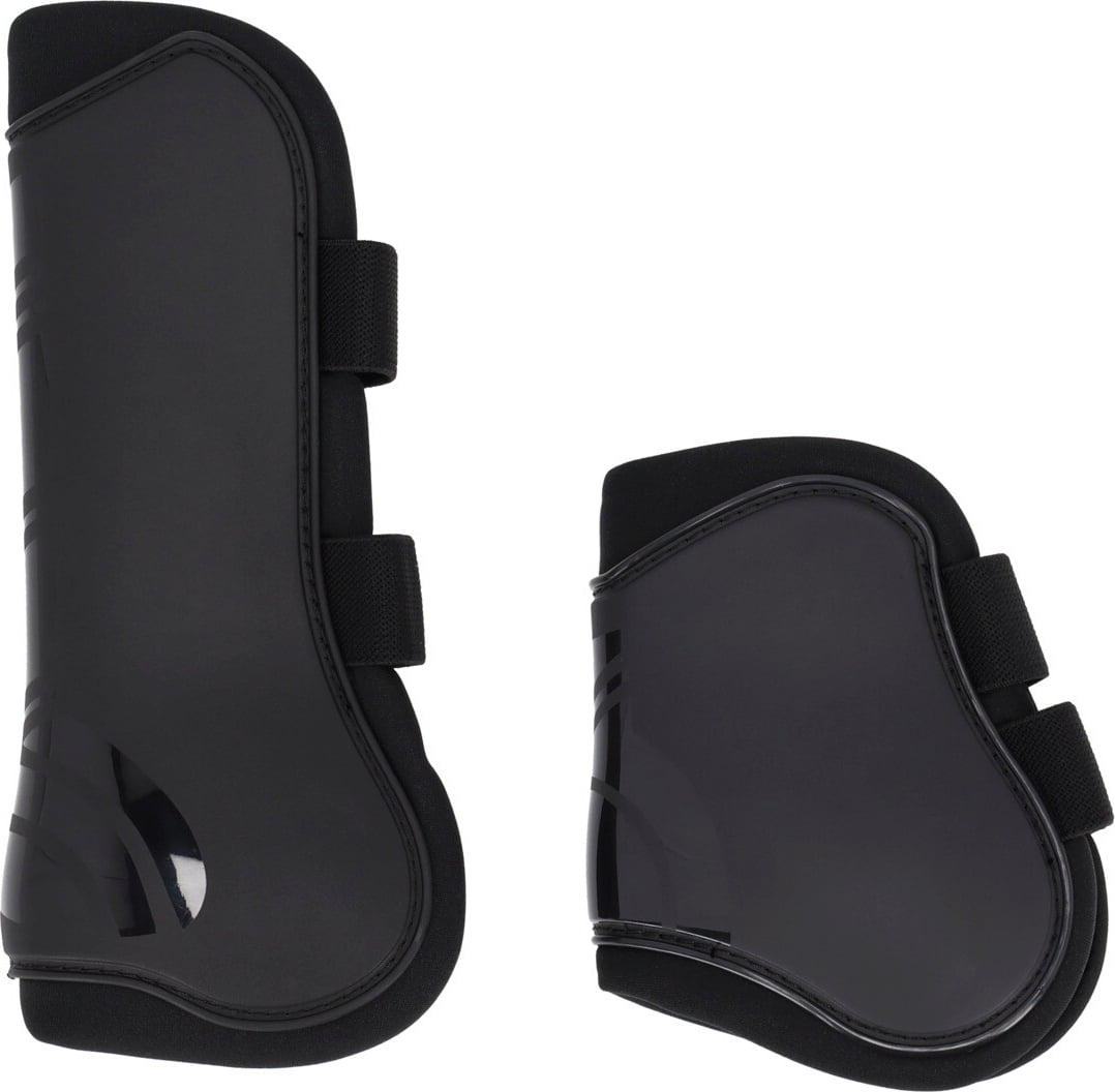 Les protections anatomiques sont dotées d’une coque extérieure rigide et résistante en plastique (polyuréthane) à finition mate, rehaussée de bandes brillantes pour un look sportif. L’intérieur est doublé de néoprène doux, garantissant un confort optimal. Les guêtres sont en outre particulièrement légères et se mettent en place rapidement et facilement grâce aux fermetures rapides élastiques.
