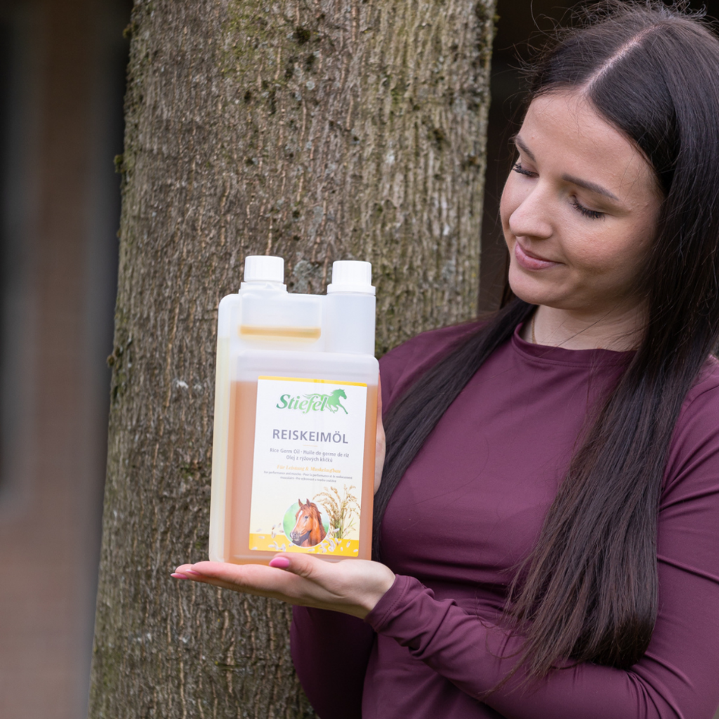 L'huile de germe de riz Stiefel est utilisée pour améliorer la ration alimentaire quotidienne des chevaux de sport et de compétition ainsi que des chevaux à alimentation lourde. L'huile de goût neutre, est riche en acides gras essentiels ainsi qu'en gamma-oryzanol et en vitamine E. Le cheval ne peut pas produire lui-même les acides gras essentiels qui doivent être ingérés par la nourriture. Le gamma-oryzanol peut augmenter le niveau de testostérone et donc les performances. La vitamine E peut empêcher la formation de radicaux libres et a un effet antioxydant. C'est également une vitamine importante pour le métabolisme musculaire qui soutient la régénération des cellules musculaires après l'effort.