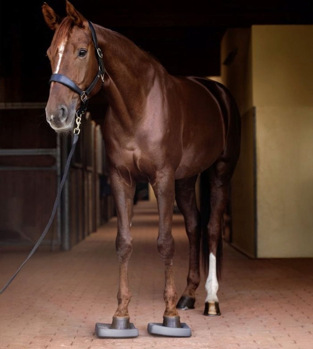 Les pads créent une surface souple et légèrement instable, incitant le cheval à rechercher activement son équilibre et à maintenir une tension corporelle consciente. Cet exercice développe non seulement la musculature, mais favorise également la perception du corps et la proprioception.