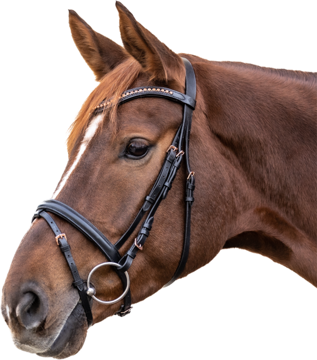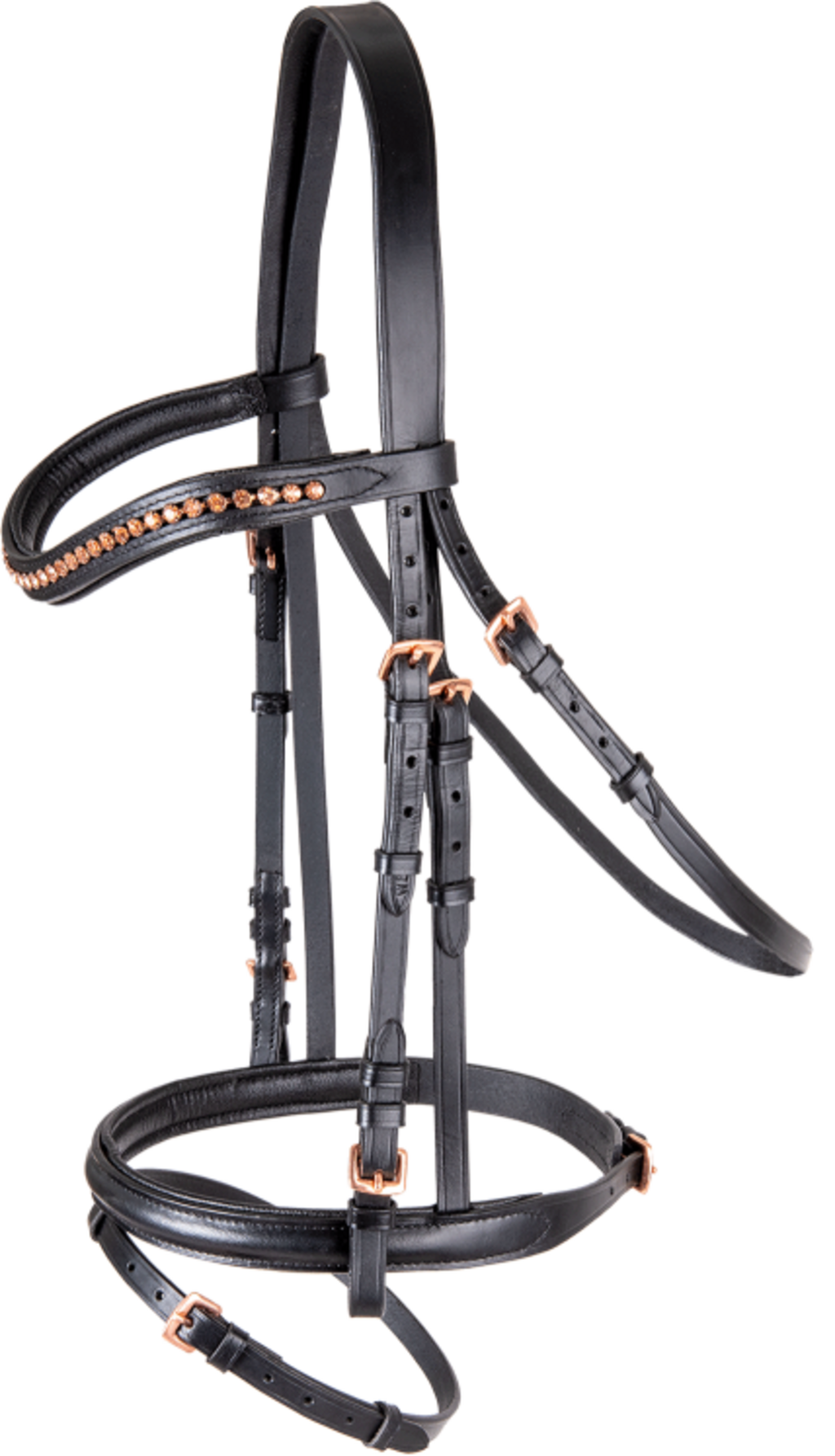Cette bride fait partie de la collection populaire et abordable de Waldhausen, alliant cuir robuste, finition soignée et excellent rapport qualité-prix. Elle est équipée d’une muserolle combinée de style anglais. La têtière droite assure un bon équilibre, tandis que le frontal courbé apporte une touche d’élégance supplémentaire. Les boucleries en métal avec une finition rosé constituent un détail raffiné qui attire le regard.
