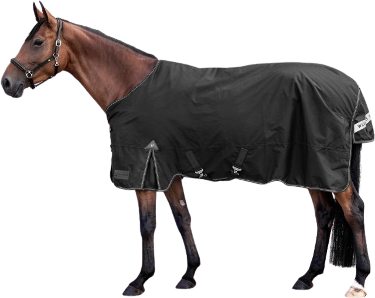 La coupe soignée garantit un excellent maintien : les fermetures frontales à double boucle en T sont équipées d’un rabat en velcro qui, associé aux sursangles croisées réglables, empêche la couverture de glisser. Pour les périodes de faible luminosité, des éléments réfléchissants sur le liseré et le rabat de queue améliorent la visibilité de votre cheval.