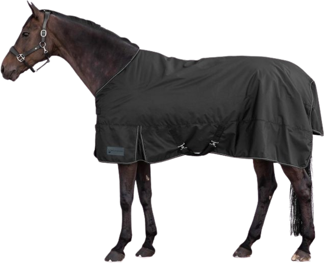 Fabriquée en matériau extérieur Ripstop 600 deniers robuste, cette couverture est résistante aux intempéries, imperméable et particulièrement durable. La fente d’aisance éprouvée et la double fermeture frontale en T garantissent une liberté de mouvement maximale et un maintien sûr. Les détails réfléchissants sur le biais assurent une bonne visibilité par faible luminosité. Grâce au système Clip-In et aux œillets de fixation, la couverture peut être facilement combinée avec des sous-couvertures ou un couvre-cou, afin de s’adapter à presque toutes les températures.