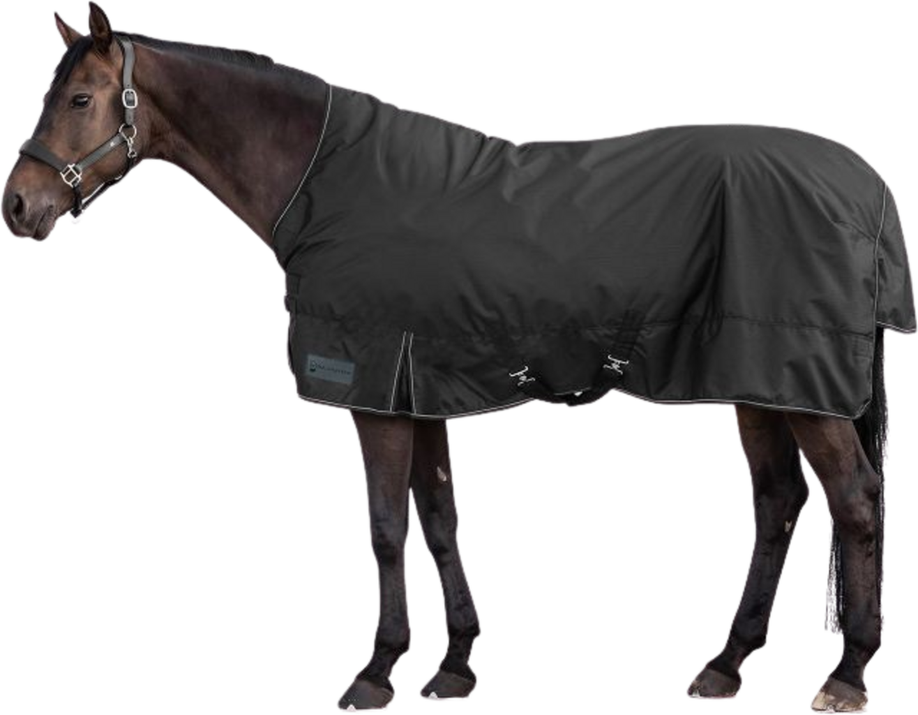 Cette couverture non doublée (0 g) est particulièrement légère tout en étant extrêmement résistante, grâce à son matériau extérieur Ripstop 600 deniers éprouvé. Elle est ainsi non seulement résistante à la déchirure, mais également totalement imperméable, tout en offrant une excellente respirabilité. Le design spécifique High Neck de la couverture Nordic présente une coupe plus haute à la base de l’encolure, apportant une protection supplémentaire contre le vent et la pluie au niveau sensible du garrot, sans limiter la liberté de mouvement.
