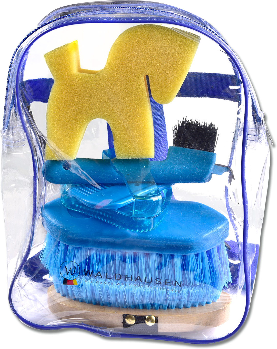 Vous recherchez le set parfait, contenant tout le nécessaire pour les soins quotidiens de votre compagnon ? Le Grooming Kit de Waldhausen est l’équipement de base idéal pour les petits et grands passionnés de chevaux – livré dans un sac à dos transparent très pratique !
