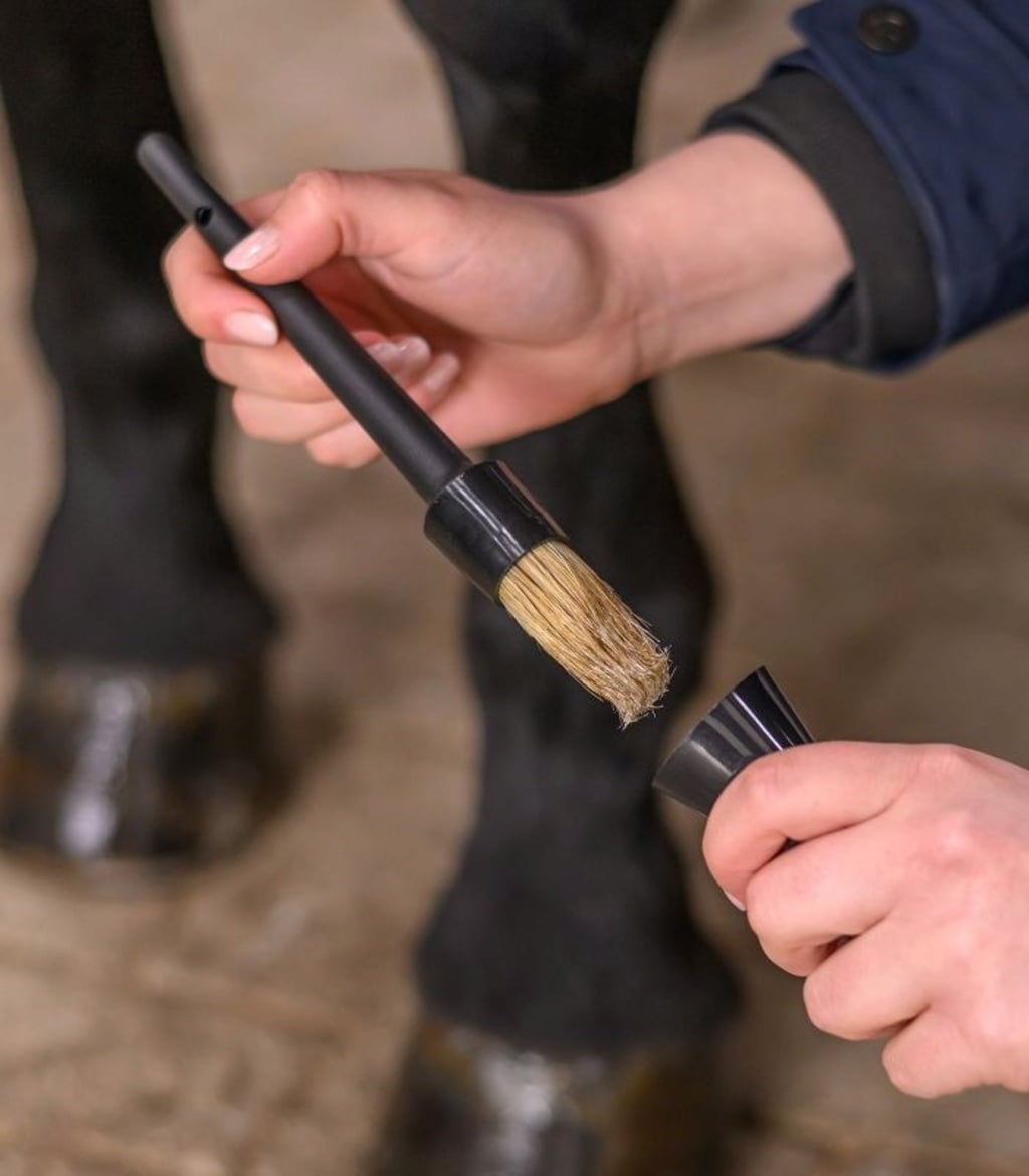 Vous souhaitez appliquer de l’huile ou de la graisse pour sabots avec précision et uniformité ? Le pinceau pour sabots de Waldhausen rend l’entretien des sabots de votre cheval simple et précis !