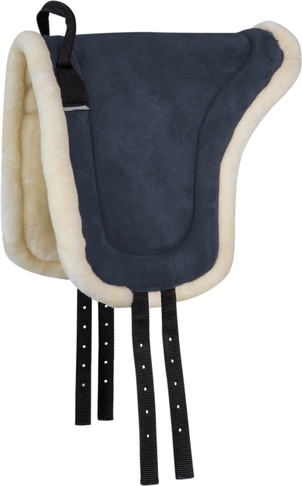 Le dessous est doublé d’une fausse fourrure moelleuse qui protège le dos du cheval et assure une répartition homogène de la pression. Pour le cavalier, la surface supérieure en suédine antidérapante garantit une assise sûre et stable. Un atout supplémentaire : la poignée solide à l’avant, pour plus de sécurité. Ce pad offre un grand confort tant pour le cheval que pour le cavalier et constitue une excellente alternative à la selle traditionnelle.
